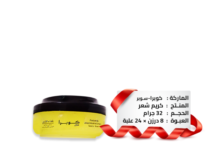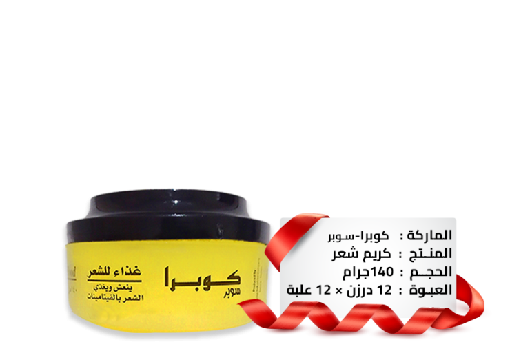 نقدم لكم منتج كوبرا سوبر، الذي يعتبر غذاءً متكاملًا للشعر. فتركيبته الخاصة تجعل شعرك أكثر جمالاً ولمعانًا، كما أنها خالية من الزيوت والكحول التي تثقل الشعر. بالإضافة إلى ذلك، فإنها تقلل من تراكم الدهون والشوائب على الشعر، لذلك لن تحتاج إلى شامبو مكثف لتنظيفه. كما يقوم هذا المنتج بتوفير الحماية لشعرك من آثار الكلور المتراكم في المياه، كما يحتوي على واقي شمسي يحمي شعرك من أشعة الشمس الضارة.